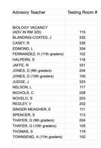 9th, 10th, and 11th grade students report to their testing locations and 12th graders to the IMC
